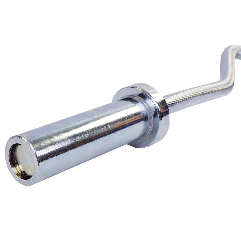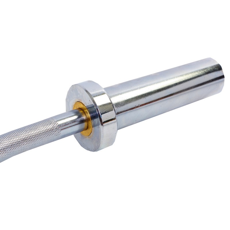Олимпийский гриф изготовлен из высококачественной промышленной стали, устойчивой к деформации и защищённой от коррозии хромированием. Плавные изгибы обеспечивают удобный с анатомической точки зрения хват, а мелкие насечки предотвращают соскальзывание рук атлета. Посадочные втулки для блинов соединены с грифом посредством подшипников и вращаются независимо от него и друг друга. За счёт этого не нарушается динамика упражнений – весовые блины не выворачивают гриф из рук, что немаловажно при работе со значительным весом. Фиксация блинов осуществляется стандартными замками соответствующего диаметра.