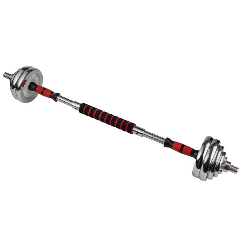 Гантели изготовлены из высококачественной хромированной стали и имеют стильный, эстетически привлекательный дизайн. Комплект включает в себя два грифа, два замка и набор весовых блинов. Для обеспечения максимального комфорта и безопасности тренировок на центральную часть грифов (область захвата) нанесены насечки, что предотвращает скольжение ладони. В то же время звездообразные замки (гайки Вейдера) позволяют быстро собрать/разобрать гантели и обеспечивают надёжную фиксацию блинов – они не болтаются и тем более не могут упасть