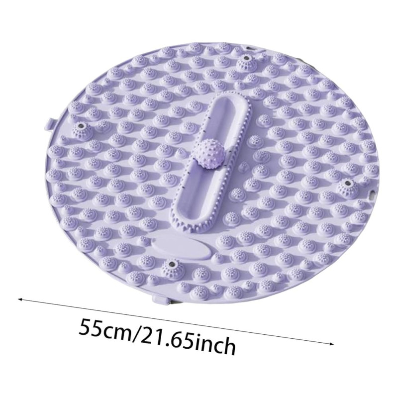 Он предназначен для стимуляции биологически активных точек стопы, улучшения кровообращения и снятия усталости. Коврик имеет диаметр 55см, по середине есть удобная дорожка для прокатывания стопами с помощью мячика.