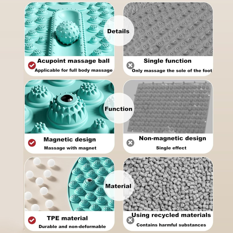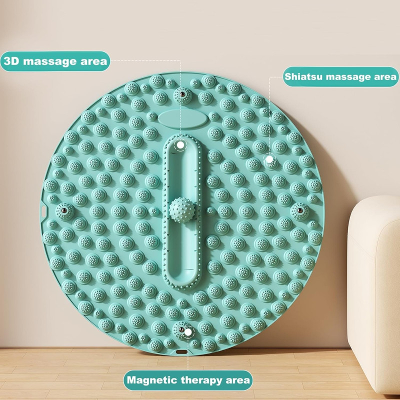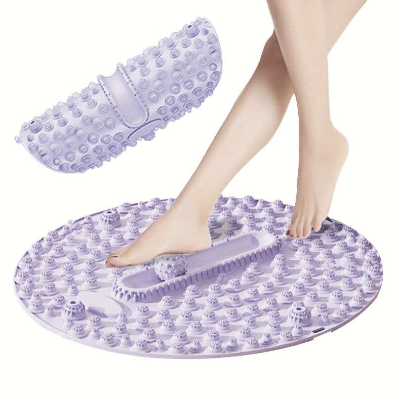 Он предназначен для стимуляции биологически активных точек стопы, улучшения кровообращения и снятия усталости. Коврик имеет диаметр 55см, по середине есть удобная дорожка для прокатывания стопами с помощью мячика.