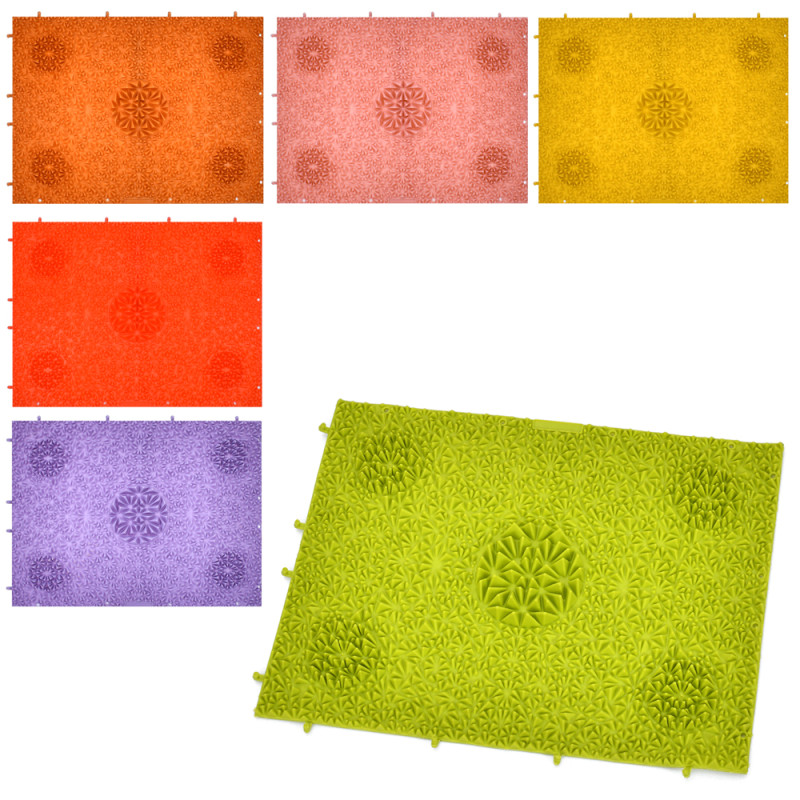 Отличительная особенность данной модели – сегментированное покрытие. То есть рисунок на поверхности неоднородный, а значит, на стопы оказывается разное воздействие, что повышает эффективность занятий. Он сделан из резины – материала, который не стирается и долго служит, а кроме того – гигиеничен и легко моется. Более крупные выступы создают впечатление ходьбы по гальке, мелкие бугорки активно стимулируют стопу и способствуют мышечному расслаблению. Яркий жизнерадостный цвет изделия дополнительно подарит эстетическое удовольствие.