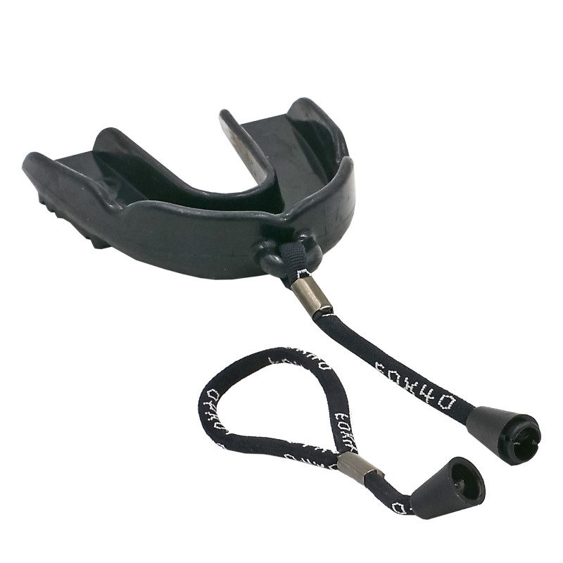 Капа боксерская одночелюстная с креплением к защитной маске в футляре BO-5912 FOX 40 MASTER(термопл, черный, прозрачный)