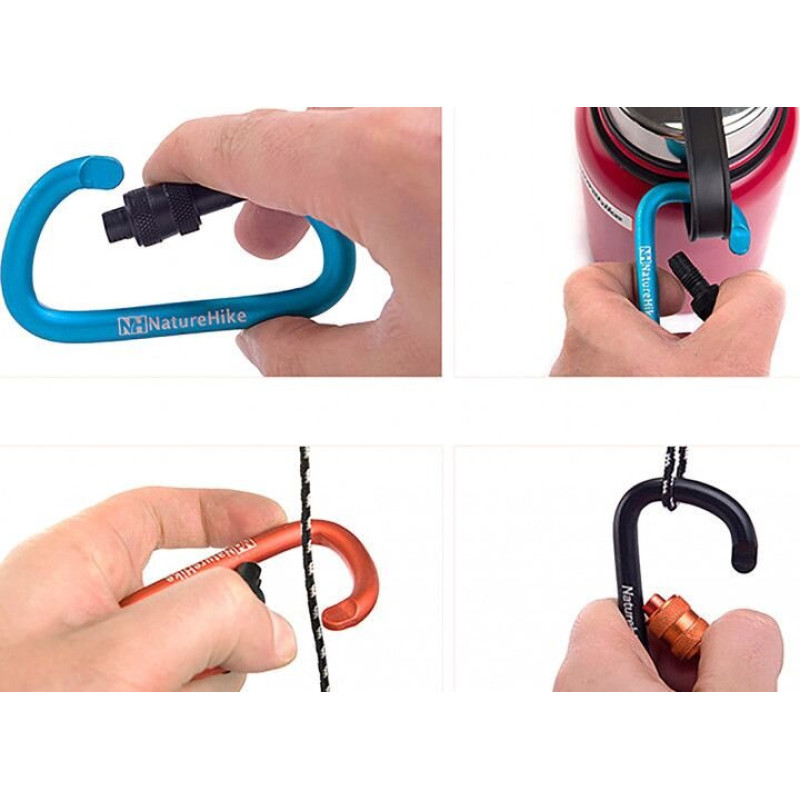 Карабін Naturehike D-type виготовлений з алюмінієвого сплаву. Він міцний, не деформується, прослужить вам довгий час. Аксесуар призначений для кріплення різноманітних предметів. Ви можете прикріпити до нього ключі та використовувати як брелок. А можете закріпити на джинсах чи рюкзаку. Він легкий і компактний — його довжина складає всього 8 сантиметрів. Карабін D-type – це яскравий аксесуар, який можна функціонально використовувати. Особливість цього аксесуара в тому, що він оснащений муфтою для запобігання випадковому відкриттю. Максимальне навантаження – 45 кг, в альпінізмі не використовується.