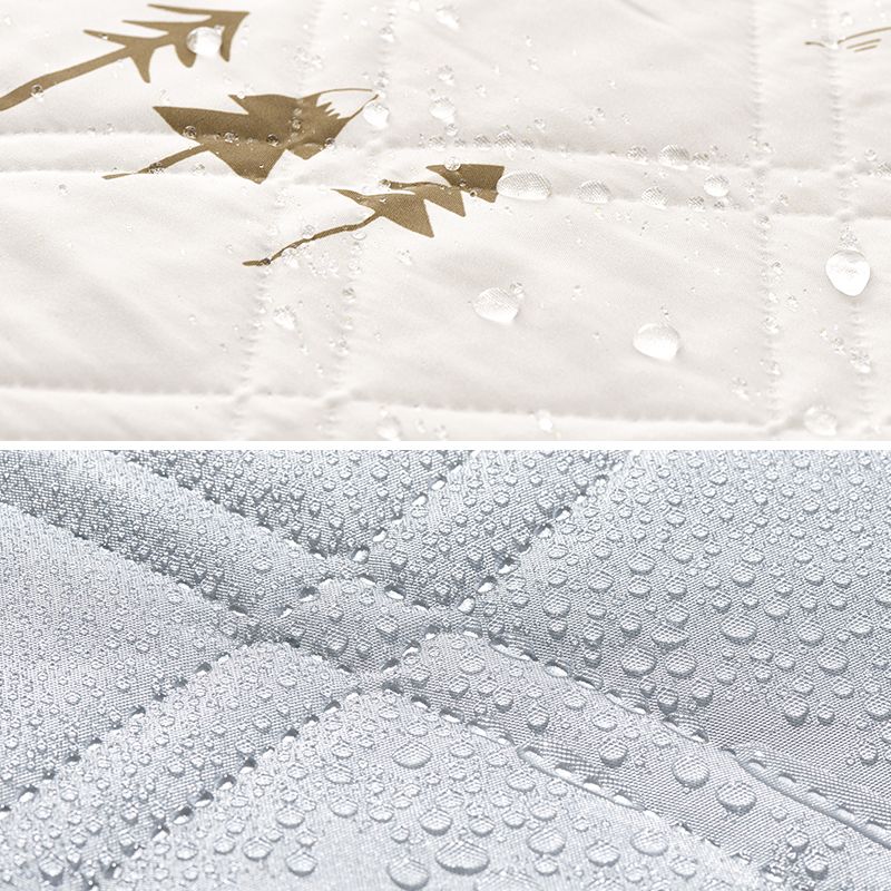 - Матеріал: тришарова структура: верхній шар - епонж, усередині - бавовняна підкладка, внизу - вологостійка алюмінієва плівка