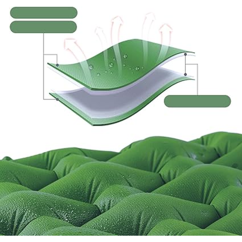 Виготовлена з двошарового матеріалу, що включає 40D нейлон TPU та ущільнювальний шар з TPU, модель демонструє міцність і несприйнятливість до появи розривів під час тривалої експлуатації. Матеріал також має водонепроникні властивості, забезпечуючи захист тіла від намокання, навіть під час лежання на вологій землі.