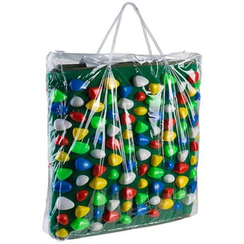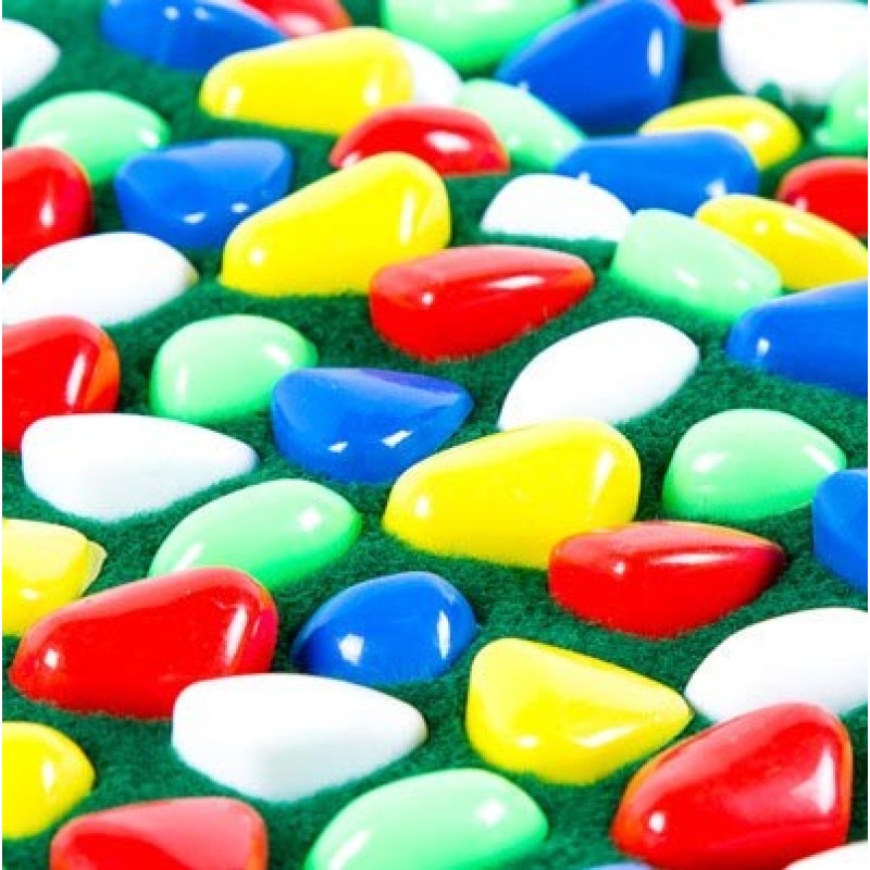 Коврик изготовлен из высококачественного поливинилхлорида (PVC), прочного и устойчивого к износу, но при этом достаточно мягкого, чтобы аксессуар можно было свернуть в компактный рулон. Непосредственно полезное воздействие оказывают пластиковые камни разных размеров, которые наклеены на поверхность коврика.Они образуют три участка, где один – это сплошная «россыпь», по которой можно походить, а два других повторяют форму ступней – для статичного воздействия на подошвы ног. Также на коврик нанесена схема, показывающая, на что в большей степени оказывает воздействие тот или иной камень.