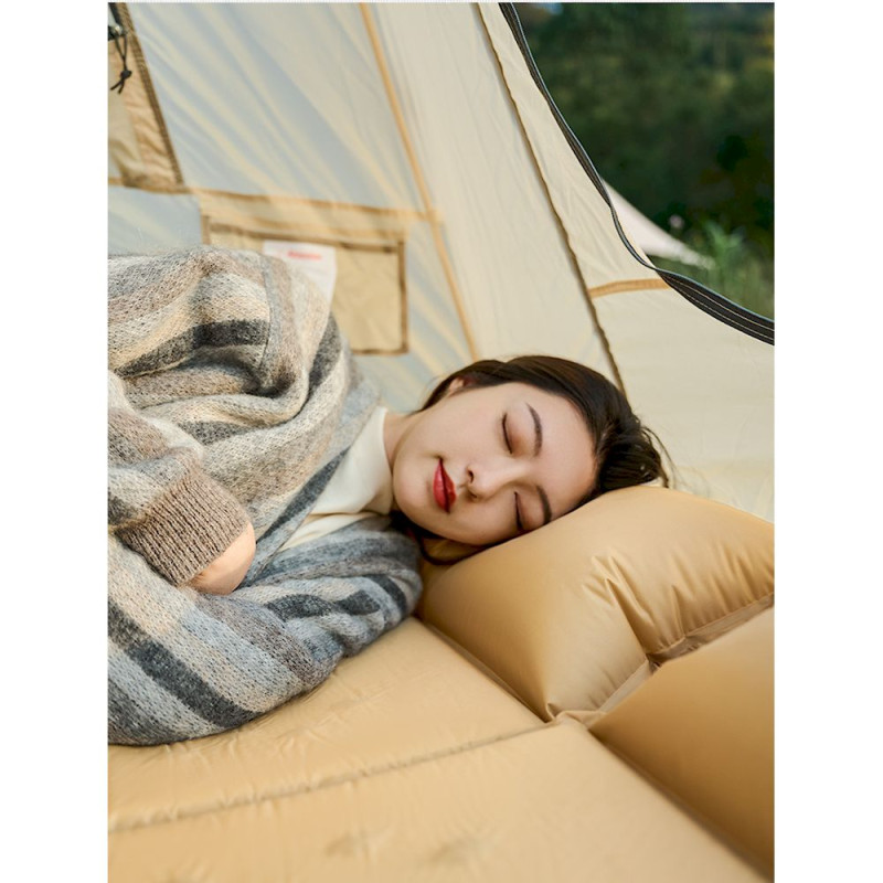 В цьому килимку реалізована технологія самонадування. Зазвичай, у згорнутому стані він компактний і плоский. Спочатку потрібно відкрити повітряний клапан, щоб матрац ввібрав повітря, а потім надути килимок. Після цього повітряний клапан закривається, щоб повітря не потрапляло.