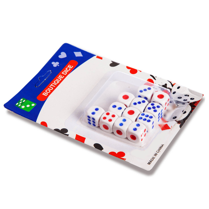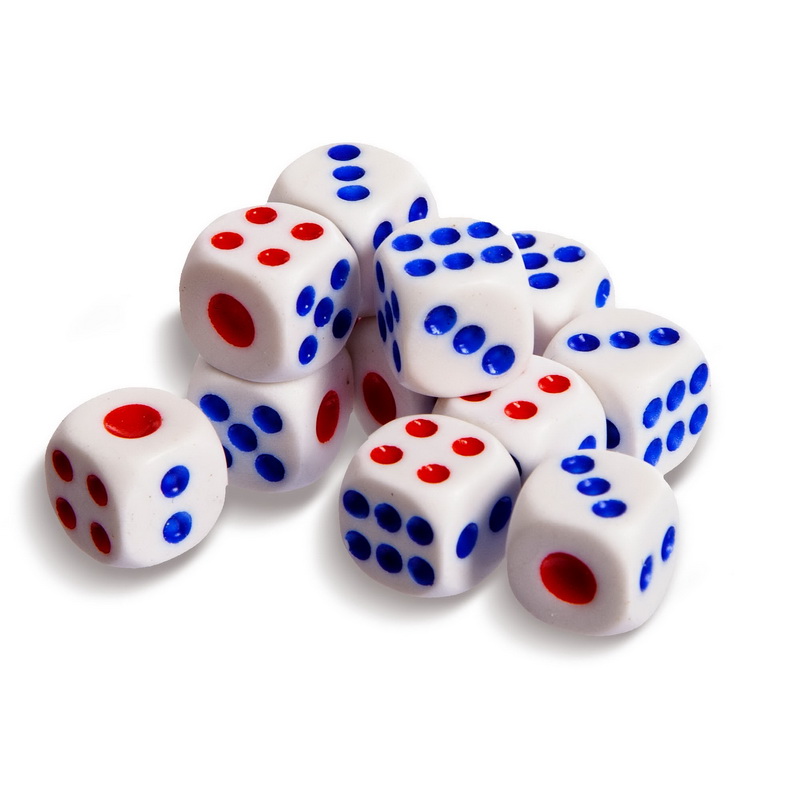 Эти кости представляют собой правильные шестигранные кубики, на каждую грань которых нанесены точки (от 1 до 6). Для их изготовления используется прочный, устойчивый к механическому воздействию пластик, что обеспечивает целостность костей.Все они тщательно откалиброваны, поэтому их характеристики, такие как центр тяжести и форма, не влияют на результат броска, и предугадать какое число выпадет практически невозможно.