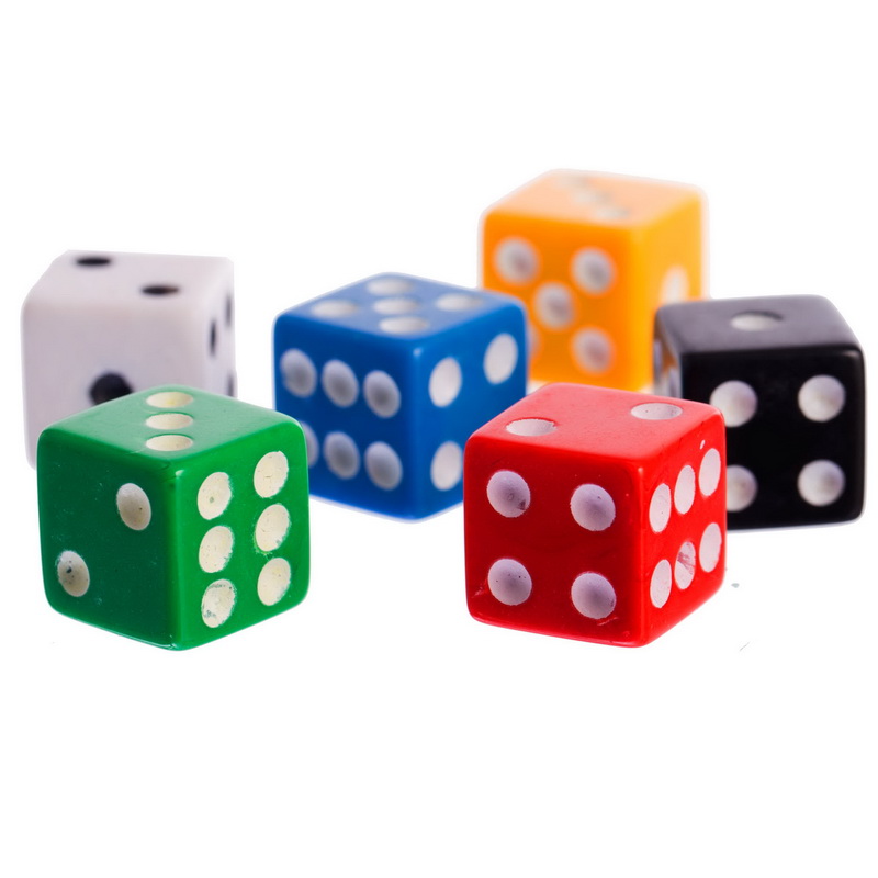 Эти кости представляют собой правильные шестигранные кубики, на каждую грань которых нанесены точки (от 1 до 6). Для их изготовления используется прочный, устойчивый к механическому воздействию пластик, что обеспечивает целостность костей.Все они тщательно откалиброваны, поэтому их характеристики, такие как центр тяжести и форма, не влияют на результат броска, и предугадать какое число выпадет практически невозможно.
