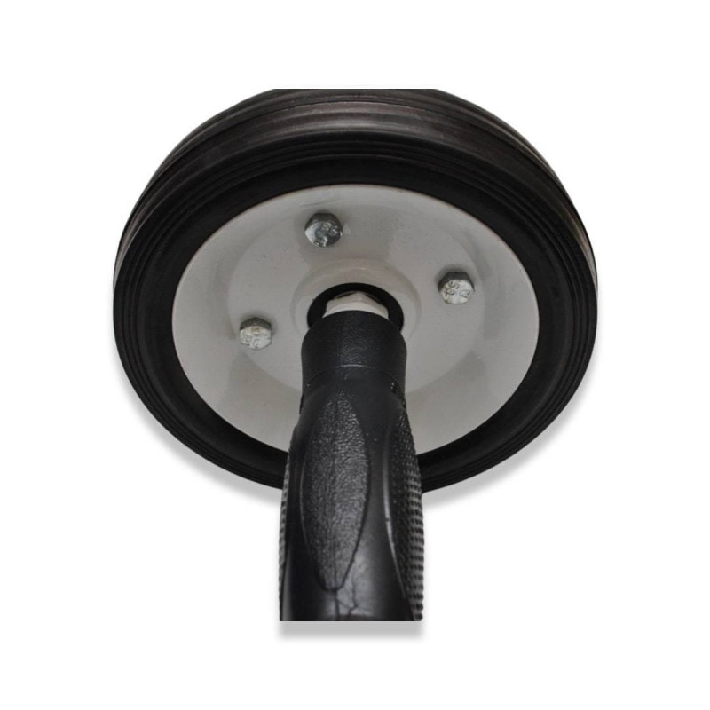 - Безопасность. Сама конструкция сделана из металла, а колесико и ручки прорезинены. Если ладони вспотеют, они не будут скользить по снаряду. Колесо для пресса выдерживает вес 150 кг, поэтому оно доступно среднестатистическому пользователю.