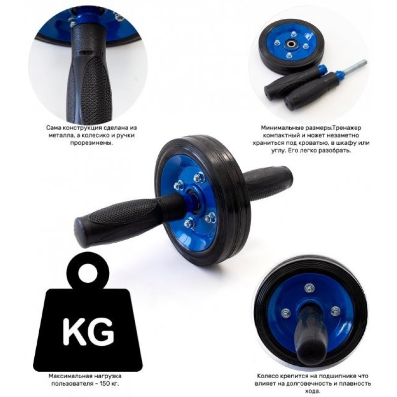 - Безопасность. Сама конструкция сделана из металла, а колесико и ручки прорезинены. Если ладони вспотеют, они не будут скользить по снаряду. Колесо для пресса выдерживает вес 150 кг, поэтому оно доступно среднестатистическому пользователю.