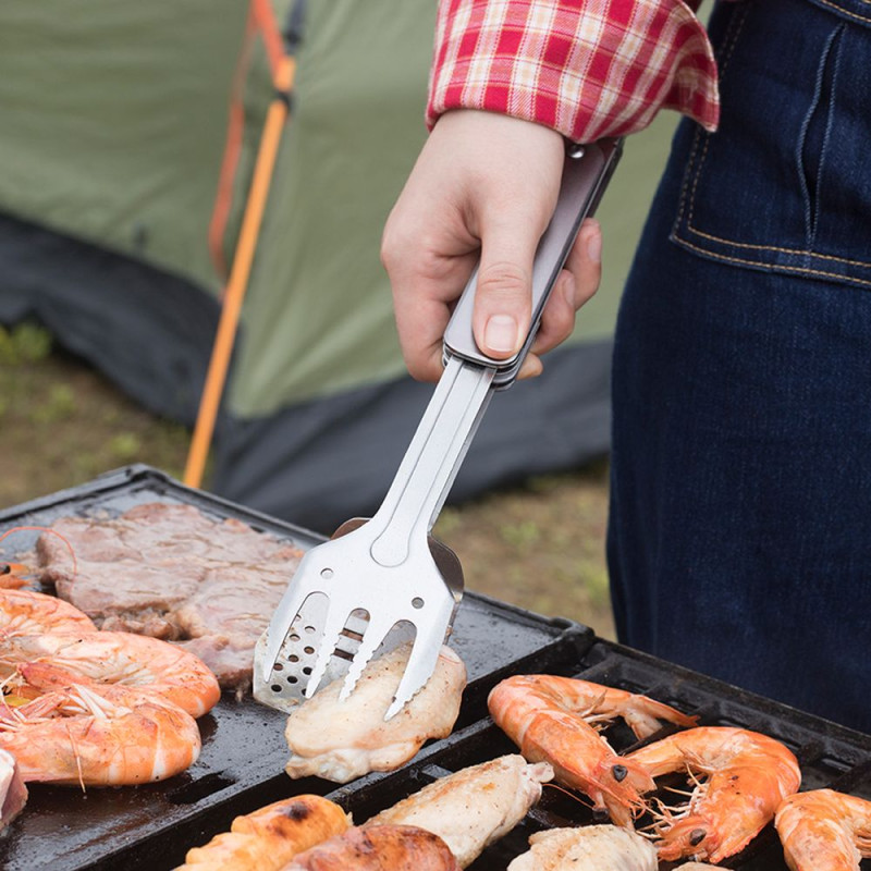 У складеному стані два інструменти можна з'єднати між собою, щоб вони не загубилися, і покласти для зберігання в нейлоновий чохол на липучці. Можна з'єднати і готові до використання лопатку та виделку. У цьому випадку виходять щипці, якими зручно перевертати м'ясо або овочі на грилі.