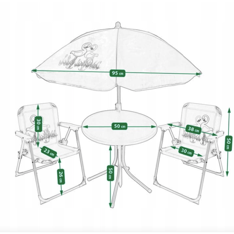 Вы мечтаете о ярком и уютном уголке для ваших малышей на свежем воздухе? Детский комплект мебели Baby, включающий милый столик, два удобных стульчика и зонт, созданный специально для маленьких принцев и принцесс. Розовый цвет и забавные рисунки из фламинго превратят любой двор или сад в настоящую игровую площадку. Этот набор бренда Jumi не только дарит радость детям, но и обеспечивает комфорт и безопасность благодаря качественным материалам и продуманному дизайну. Наслаждайтесь солнечными днями вместе с вашими детьми, создавая незабываемые моменты на свежем воздухе с ярким и функциональным комплектом мебели.