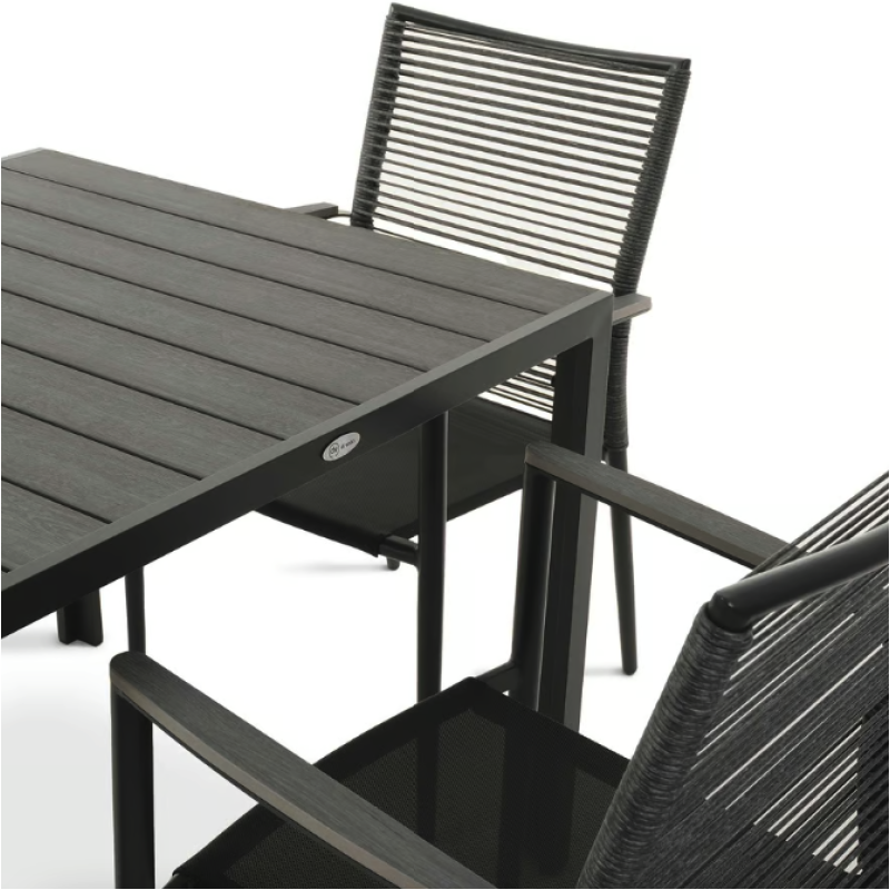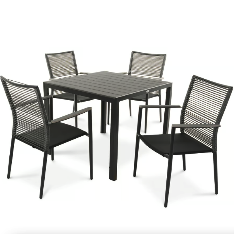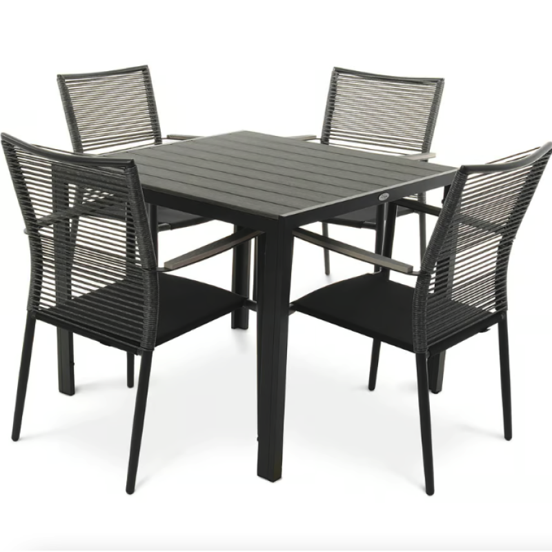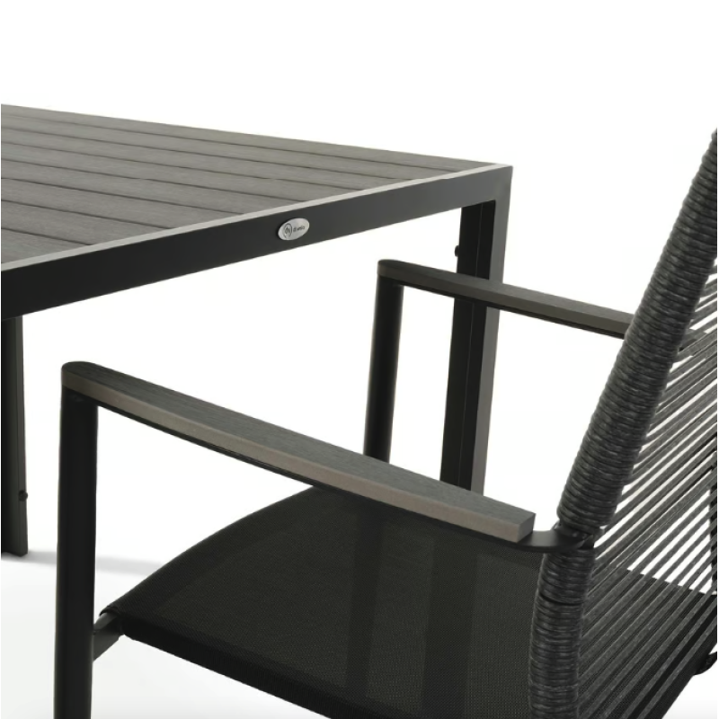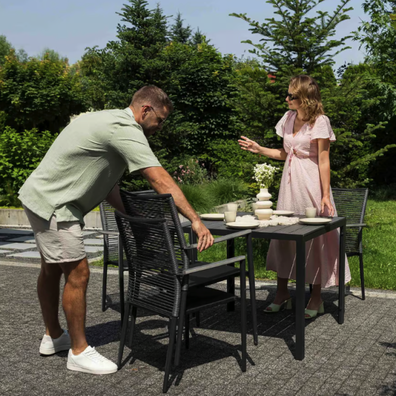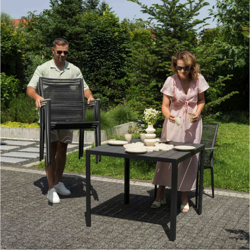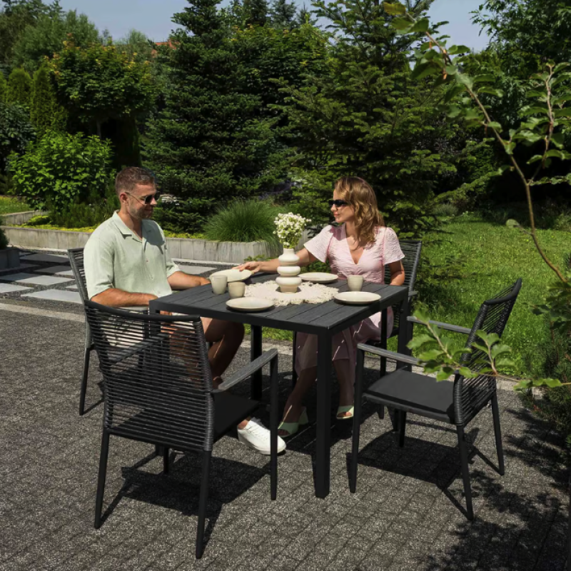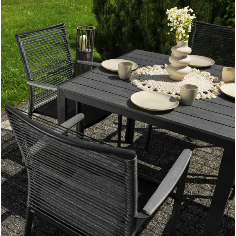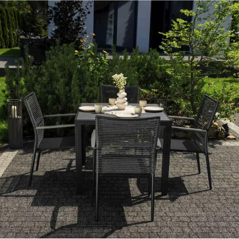 Сделайте свое открытое пространство средоточием стиля и комфорта. Carineo - это четырехместный набор практичной и элегантной садовой мебели, благодаря которой ваше пространство станет идеальным местом для приятного времяпровождения во многих отношениях. Комплект мебели для сада 4+1 состоит из изысканного столика и четырех удобных стульев, созданный, чтобы превратить ваш сад, дачу или террасу в идеальное место для отдыха и встреч. Благодаря сочетанию матово-черного алюминиевого каркаса и элементов из поливуда, имитирующих серую древесину, Carineo придает простору современный вид и изысканность. Благодаря прочным материалам мебель Carineo легка и мобильна, и в то же время прочна и устойчива к погодным условиям.