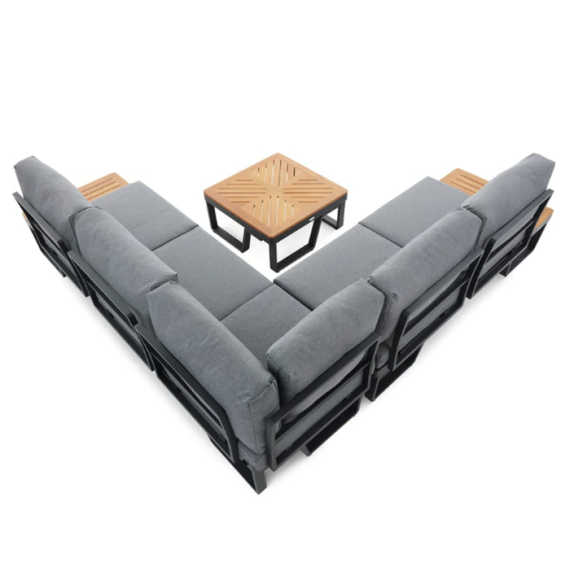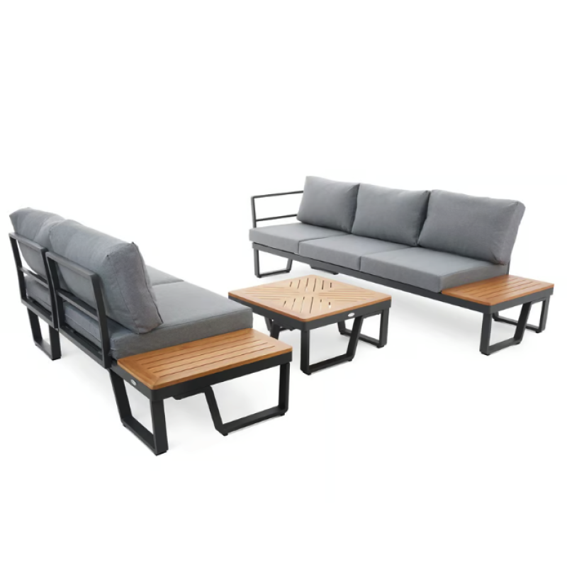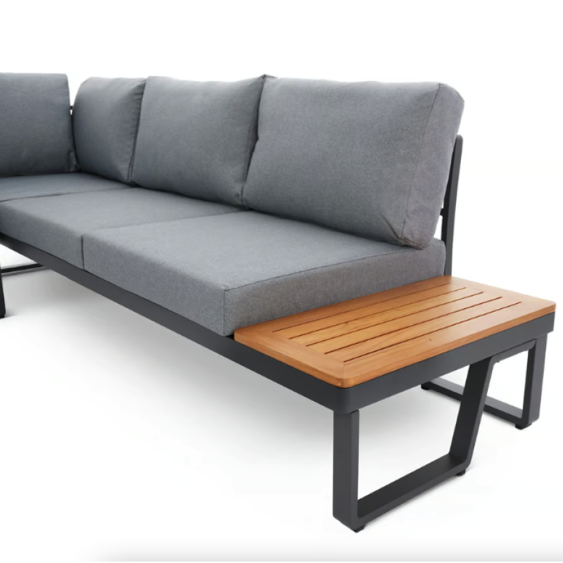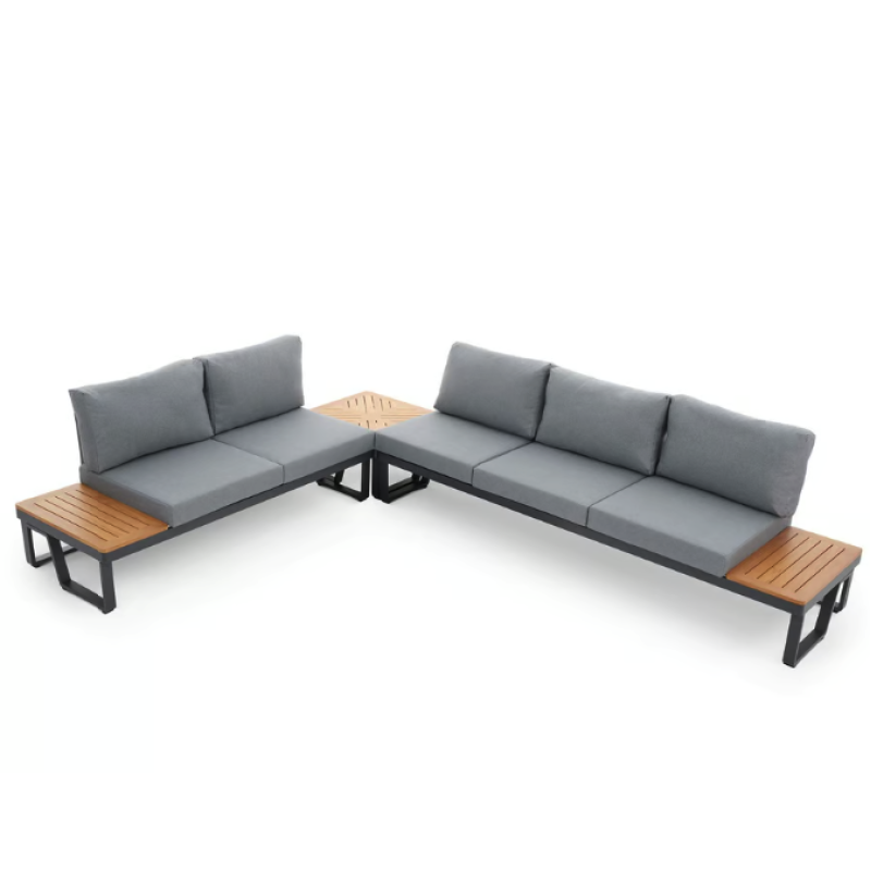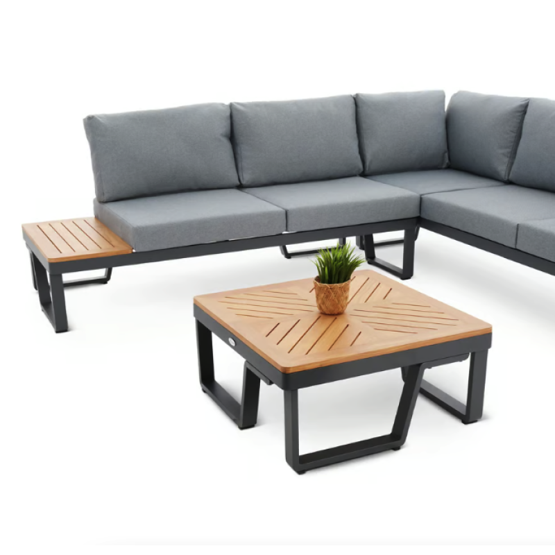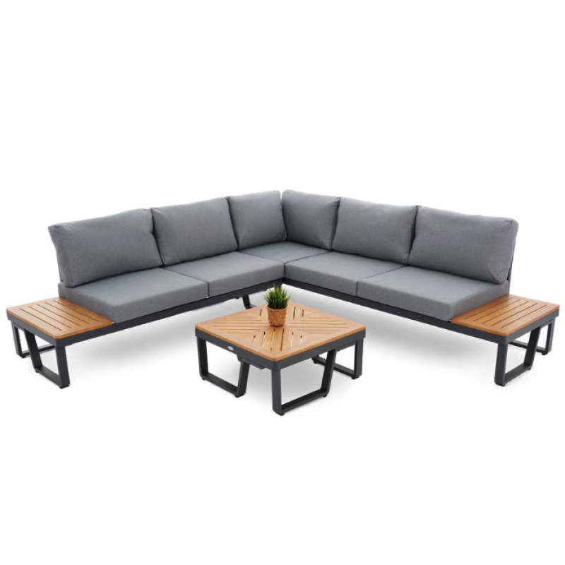 Представьте себе уютный вечер на террасе или в саду, где вы наслаждаетесь чашкой ароматного кофе, беседами с близкими или просто тишиной природы. Садовый комплект мебели Veledo - это идеальное сочетание эстетики, долговечности и удобства, которое станет сердцем вашего отдыха на открытом воздухе. Он создан для тех, кто ценит стильную мебель, которая дарит максимум комфорта и функциональности. 5-местный угловой диван с модульной конструкцией, стильный журнальный столик и мягкие подушки из пропитанной ткани делают комплект Veledo незаменимым элементом вашего пространства. Каркас из прочного алюминия с порошковым покрытием гарантирует устойчивость к погодным условиям, а натуральная радиальная сосна придает гарнитуру естественной теплоте и легкости. Чтобы сделать ваши вечера еще уютнее, в комплект входит теплое серое одеяло, которое окутает вас комфортом в прохладную погоду. Veledo от Di Volio - это не просто садовая мебель, это возможность создать идеальное место для отдыха, где стиль и удобство сочетаются в совершенном балансе.