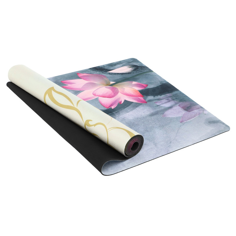 Коврик для йоги Замшевый каучуковый двухслойный 3мм Record FI-5662-22 (замша, каучук, размер 183x61x0,3см, серый-малиновый, с принтом Индийский Лотос)