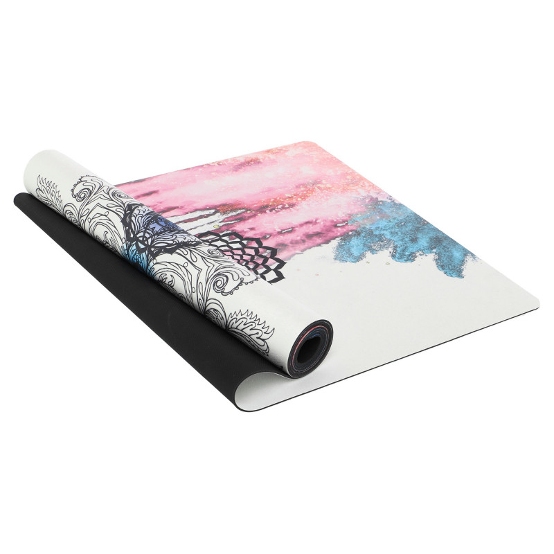 Коврик для йоги Замшевый каучуковый двухслойный 3мм Record FI-5662-25 (замша, каучук, размер 183x61x0,3см, бежевый, с принтом Чакры)