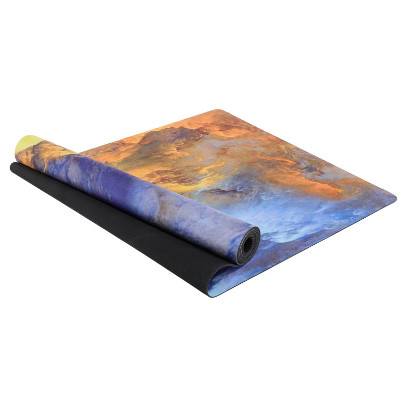Коврик для йоги Замшевый каучуковый двухслойный 3мм Record FI-5662-68 (замша, каучук, размер 183x61x0,3см, синий-желтый, с принтом Галактика)