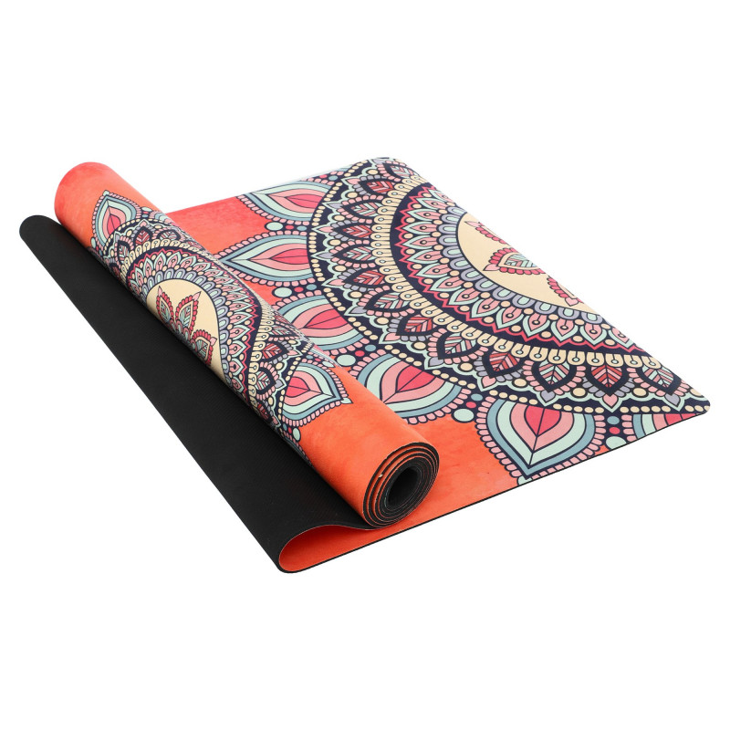 Коврик для йоги Замшевый каучуковый двухслойный 3мм Record FI-5662-9 (замша, каучук, размер 183x61x0,3см, коралловый, с принтом Мандала)