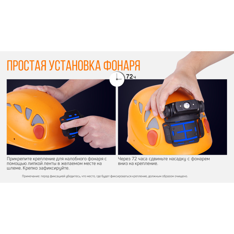 За рахунок потовщення видувної губки, яка розташована в підставі кріплення, воно добре прилягає до різних шоломів і шоломах. Кріплення забезпечує досить жорстку фіксацію і стає буквально єдиним цілим з шоломом. Ліхтар на ньому сидить щільно, але його складно отримати, щоб у разі необхідності використовувати окремо.