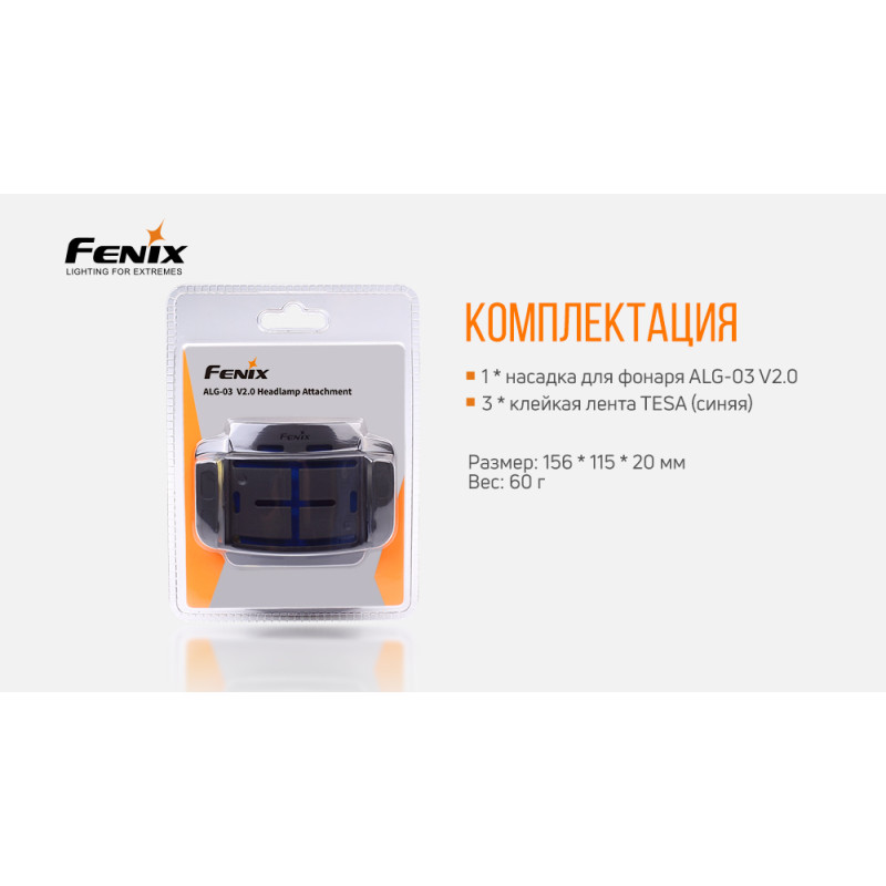 Фірма Fenix турбується про те, щоб користуватися її продукцією було завжди зручно і приємно. З цією метою вона розробляє різні види аксесуарів на допомогу власникам ліхтарів. Кріплення Fenix ALG-03 V2.0 призначений для використання як доповнення до налобнику, помещаемому на шолом. У ньому враховані дрібні особливості застосування налобного ліхтаря.