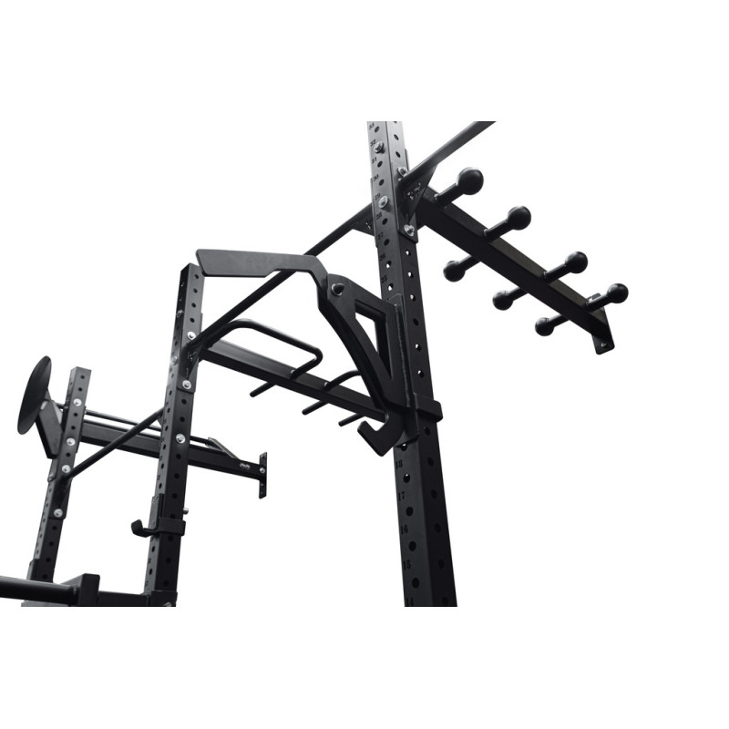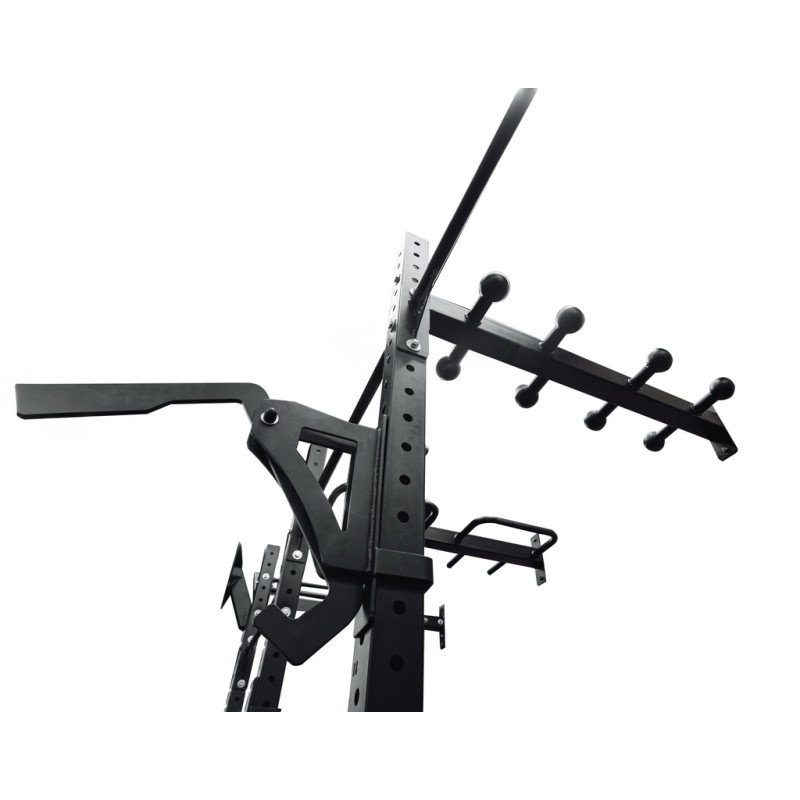 ✔ Многофункциональность — станция оборудована перекладинами для подтягиваний, креплениями для штанги и другими элементами, необходимыми для разнообразных тренировок.