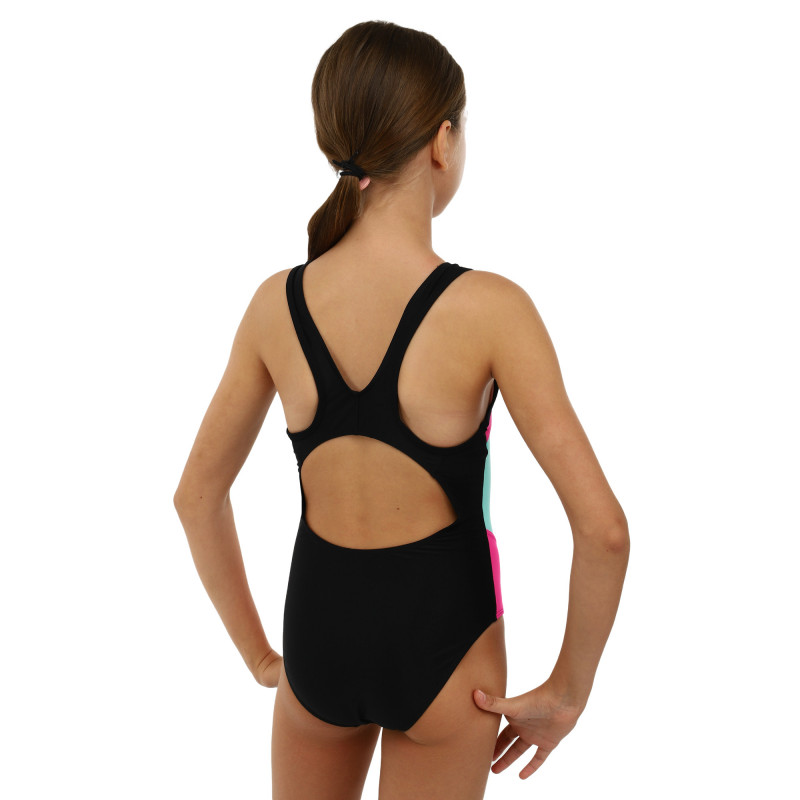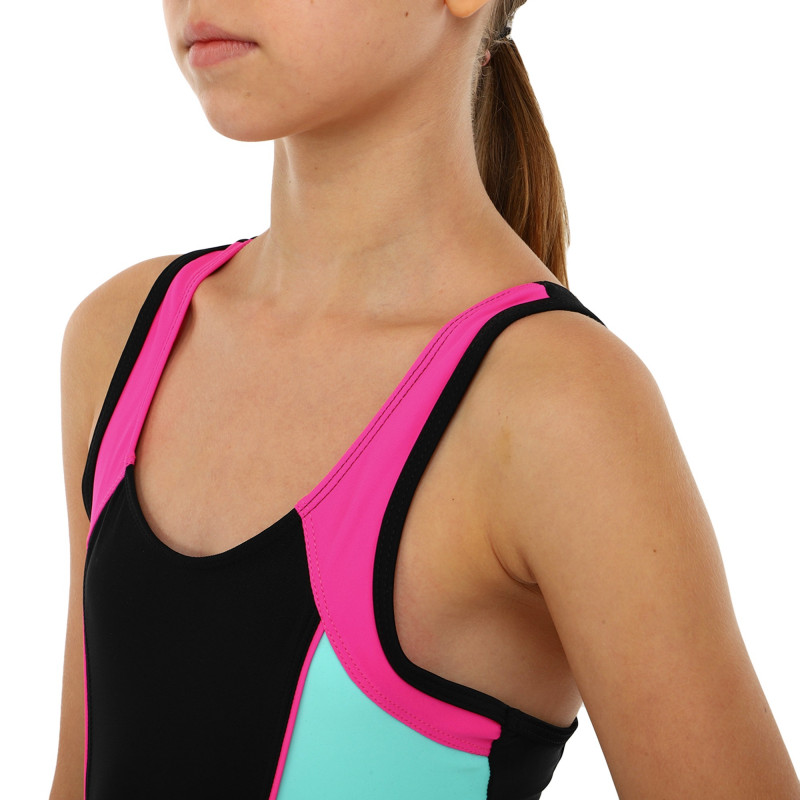 Купальник для плавания слитный детский 6-12лет черно-бирюзово-малиновый PL-2413 12