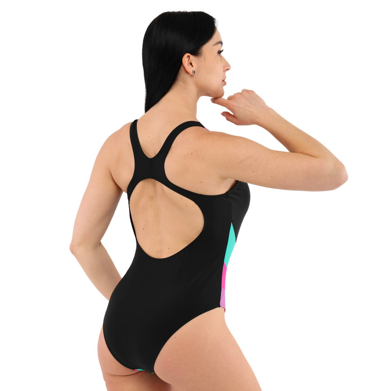 Купальник для плавания слитный женский чёрный-фиолетовый-бирюзовый PL-7671-1 44