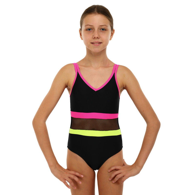 Купальник для плавания слитный детский 8-12лет черно-розово-желтый PL-2435-1 14