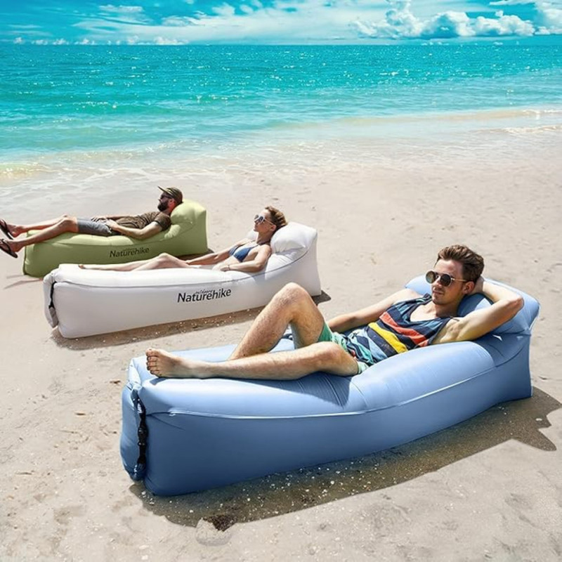 Надувний матрац Naturehike NH20FCD06 має високі бортики та широкий підголовник, що забезпечує комфортну підтримку тіла та сприяє повному розслабленню. Модель актуальна для пляжного відпочинку, пікніка та кемпінгу.