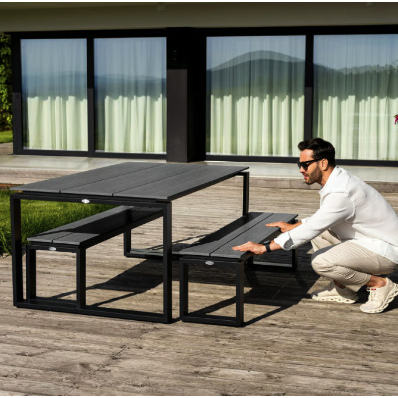 Представьте идеальное место для отдыха в вашем саду - стильное, удобное и долговечное. Садовая скамейка Pisa от Di Volio - это сочетание современного минимализма и традиционного современного стиля, гармонично вписывающегося в любое пространство. Благодаря простоте форм и сдержанной цветовой гамме в оттенках бежевого и черного, эта лавка станет элегантным акцентом вашего сада, террасы или даже балкона. Она предназначена для комфорта и долговечности. Легкая, но в то же время крепкая алюминиевая конструкция обеспечивает устойчивость и легкость в перемещении, а сиденья из полиуретановой древесины сочетает в себе естественный вид дерева и прочность современных материалов. Скамейка не боится дождя, снега, мороза, высоких температур и УФ-лучей, оставаясь в отличном состоянии на протяжении многих сезонов. А если вы хотите создать единый гармоничный ансамбль, в нашем интернет-магазине вы найдете обеденный стол в тон к лавке Pisa. Добавьте в свой сад стиль, комфорт и практичность, выбрав Pisa от Di Volio!