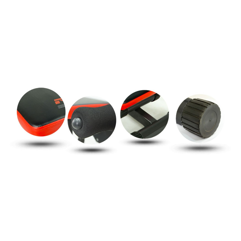Стабільна металева конструкція гарантує безпеку та максимальну стабільність під час використання лавки. Регульована висота ніжок дає вам повну свободу для адаптації обладнання до власного стилю та комплексу вправ. Завдяки механізму швидкого складання лава займає дуже мало місця в складеному стані.