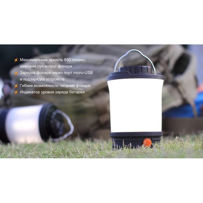 Серія кемпінгових ліхтарів Fenix продовжує поповнюватися новими моделями. Цього разу увазі покупців пропонується ліхтар Fenix CL30R. Він яскравіше за своїх попередників, а крім того, пропонує безліч додаткових переваг. Особливість кемпінгового ліхтаря полягає в тому, що він висвітлює не вузьконаправлений ділянку простору, а всю територію в діаметрі 35 метрів від ліхтаря. Тому ця модель підійде для висвітлення загальної території в наметовому таборі. А враховуючи, що ліхтар підтримує цілих шість режимів, його також зручно буде використовувати і для освітлення усередині намету. Ця модель підійде мандрівникам, рибалкам і мисливцям, а також буде корисна під час пікніків на природі з ночівлею.