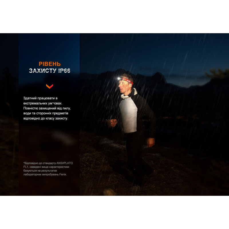 Fenix HL32R-T заточений під роботу на акумуляторному Li-ion блоці ARB-LP1900 фірмового виробництва. Цей аксесуар знаходиться у комплекті з ліхтарем та забезпечує моделі вражаючу автономність до 12.5 днів.