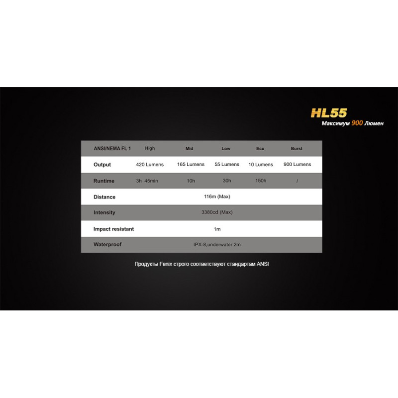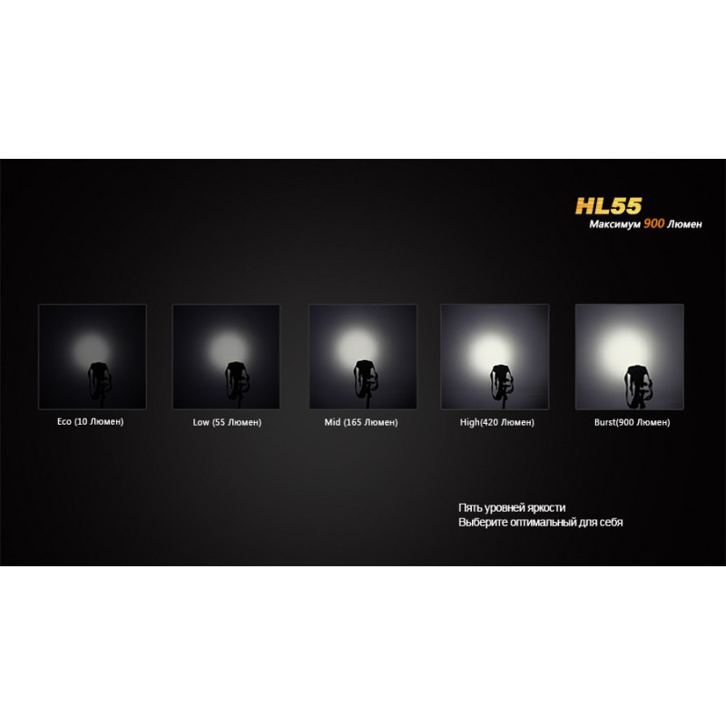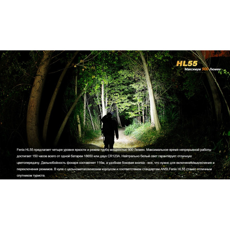 Налобний ліхтар компанії Fenix призначений туристам і любителям їзди на велосипеді. У моделі HL55 XM-L2 (U2) виробник зробив акцент на зручність використання освітлювального приладу. Вага нового пристрою — всього 115 р., а довжина корпусу — 84 мм. У ліхтаря 4 режими яскравості і додатковий турборежим. Для перемикання між ними призначена одна єдина кнопка, розташована збоку корпуса. Причому в режим турбо можна перейти з будь-якого стандартного, для чого потрібно натиснути кнопку на кілька секунд. З турбомощностью ліхтар буде світити 30 секунд, а після автоматично перейде до стандартної роботі.