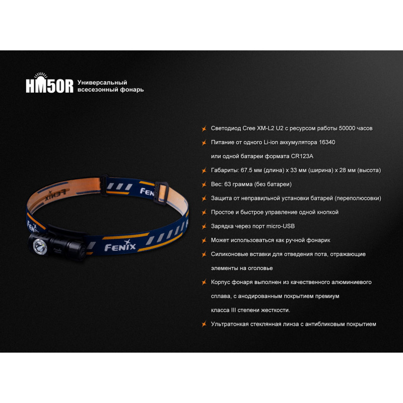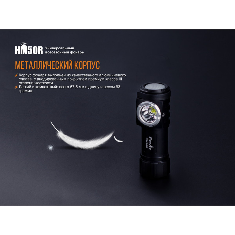 Гарантія: П'ятирічну гарантію, надану виробниками, отримує кожен з покупців ліхтарів Fenix HM50R.