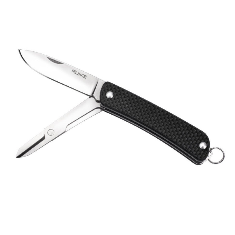 Крім ножа модель Ruike S22 має ще одним робочим інструментом-складними ножицями. Вони розміщені всередині рукоятки абсолютно за тим же принципом, що і перший інструмент. Наявність цієї додаткової функціональності допомагає користувачеві виконати більшу кількість завдань, які можуть бути актуальними в поїздках на природу.