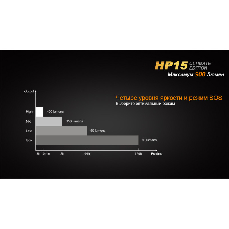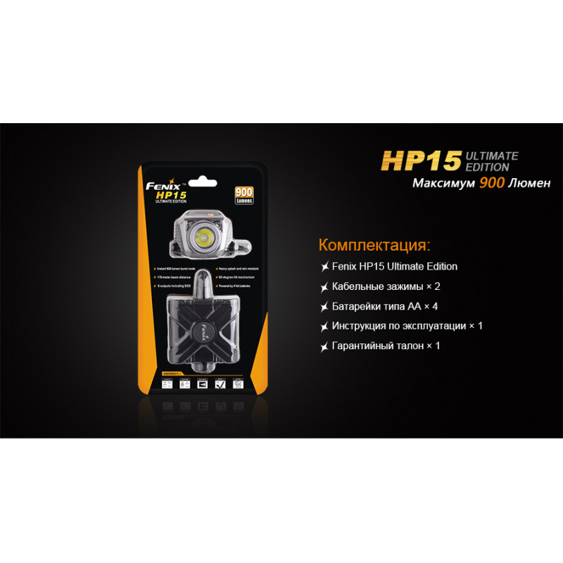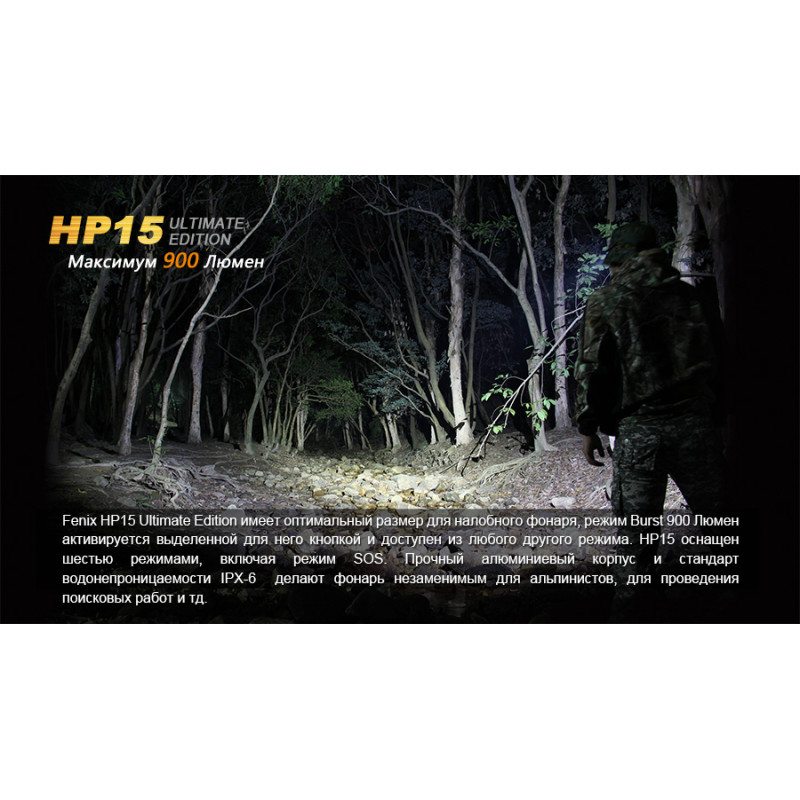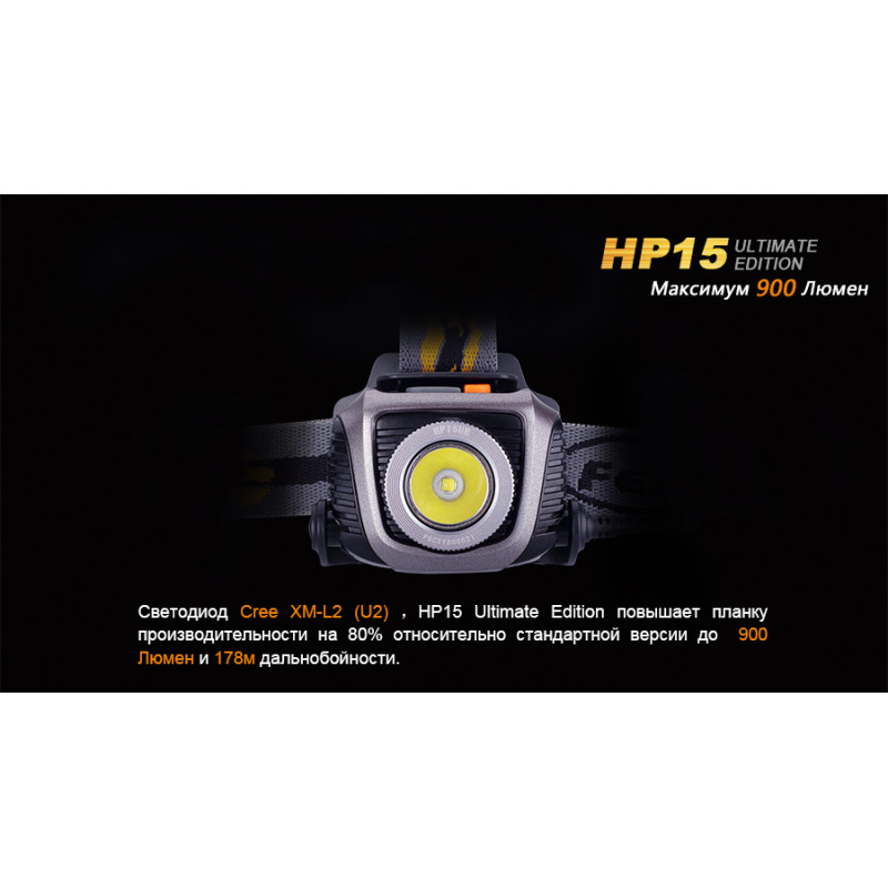 Fenix HP15 в редакції Ultimate Edition став ще більш яскравим і зручним. Завдяки світлодіода Cree XM-L2 (U2) потужність світлового потоку досягла 900 люмен. Як і інші напівпровідникові прилади цієї компанії-виробника, Cree XM-L2 (U2) здатний працювати 50 000 годин без втрати потужності. А постійний рівень світлового потоку в той час, як сідають акумулятори, забезпечує система цифрової стабілізації струму.