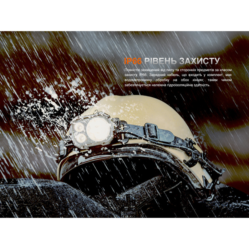 Налобний ліхтар Fenix HP35R, зарядний кабель USB Type-C, подовжувач, 2 утримувачі для кабелю, інструкція користувача, гарантійний талон.