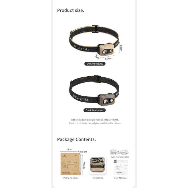 Опис налобного ліхтаря Naturehike CNK2450ZM015, коричневого: