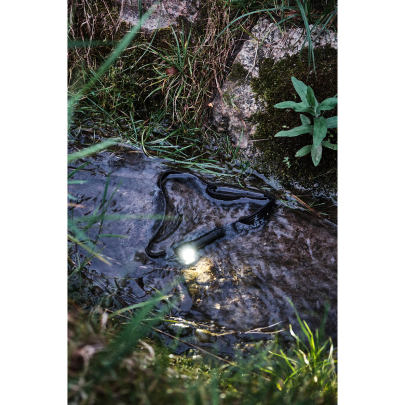 Модель постачається разом з налобним кріпленням, довжину якого можна легко змінювати під розмір голови за допомогою регулятора. Резинка чорного кольору не має світловідбивних вставок, тому користувач може зберігати анонімність у темряві без ризику бути виявленим недоброзичливцем.