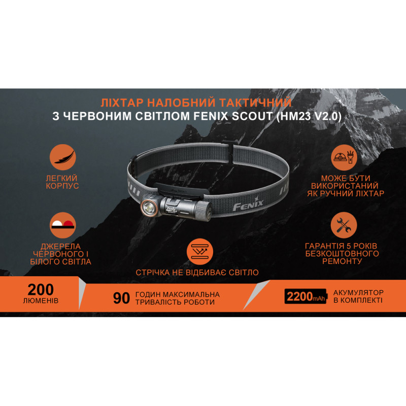 Опис ліхтаря налобного тактичного з червоним світлом Fenix Scout (HM23 V2.0):