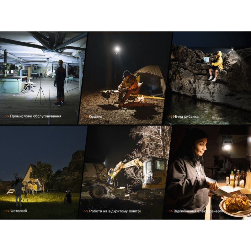 - ліхтар-прожектор для повсякденної експлуатації, туризму, кемпінгу, відеозйомок, використання на виробництві та в автосервісі;