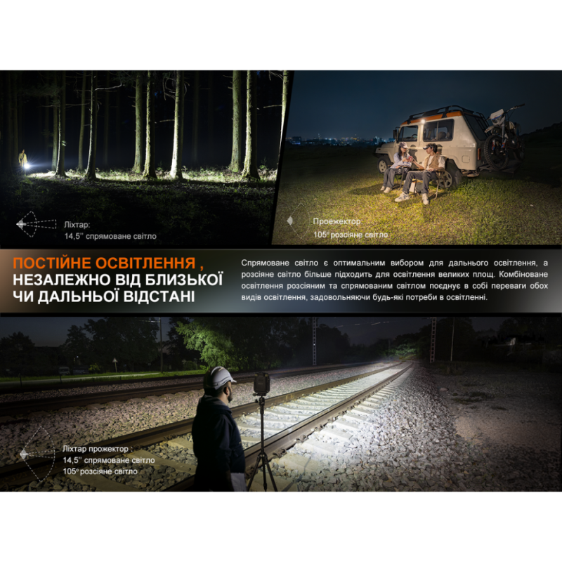 Головна перевага Fenix CL27R — наявність 4 груп освітлення, включно з групою з червоним світлом, що зберігає нічний зір.