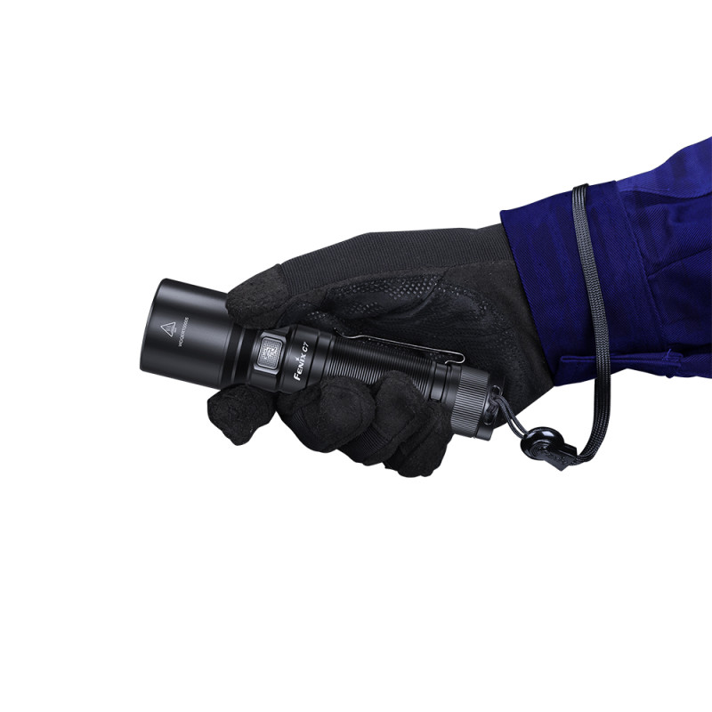 Застосований діод-Luminus SST70, термін експлуатації якого досягає 50000 годин. Управляється модель через бічну кнопку. При зарядці через USB Type-C три години вам необхідно, щоб повністю зарядити акумулятор. Комфортна кліпса на корпусі ліхтаря служить для того, щоб фіксувати його на кишені, наприклад, або ж прикріпити до поясу. Виготовлений цілком з металу корпус Fenix C7 оптимальний для виконання робіт в складних умовах – ефективний захист від пошкоджень.