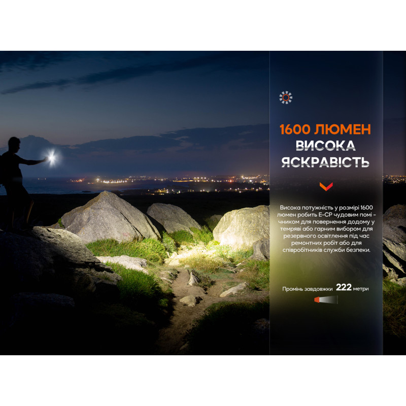 Fenix E-CP є ліхтарем для використання щодня, стане в нагоді мандрівникам, буде корисним у різних видах туризму та активного відпочинку.