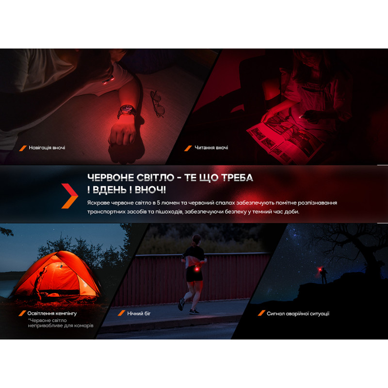 - RED. Яскравість світла дорівнює 5 люмен. Тривалість роботи – 14 годин.