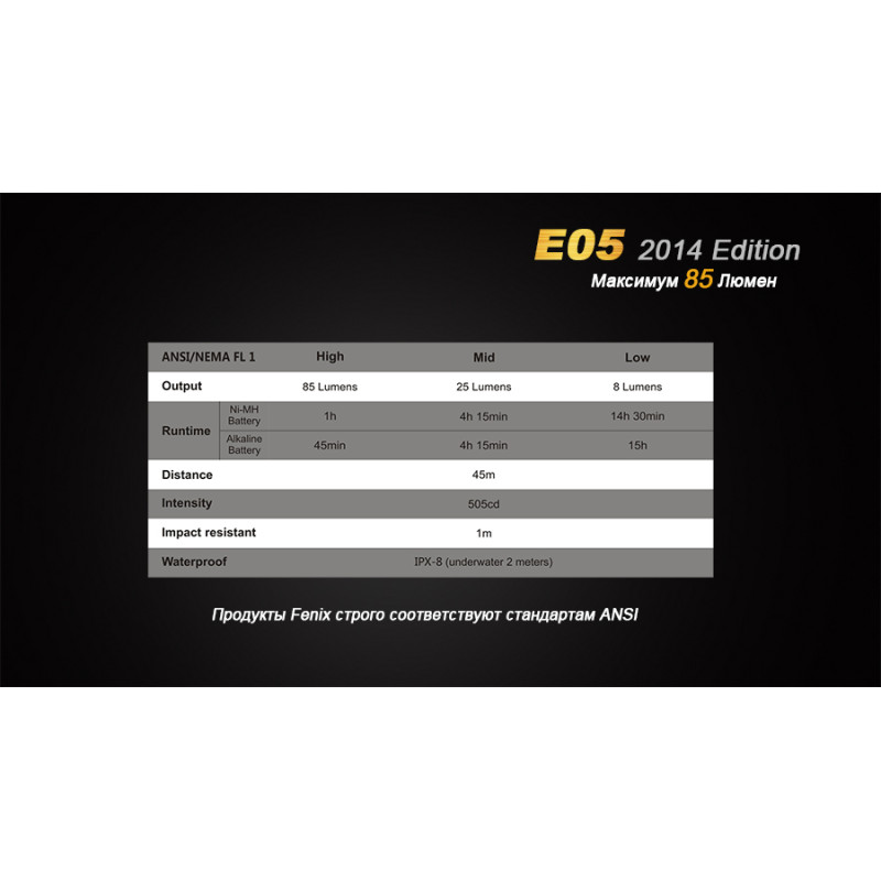 | Ліхтар Fenix E05 Cree XP-E2 R3 LED (2014 Edition) | ||||