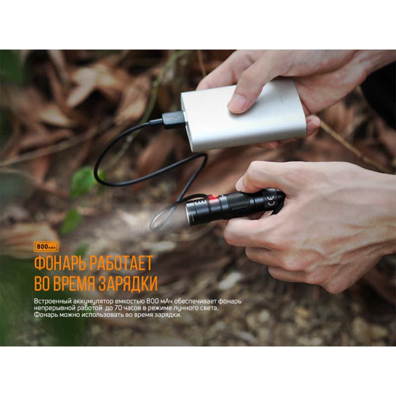 Заряджається компактний ліхтар за допомогою USB Type-C. його скромні розміри і вага дуже зручні для того, щоб застосовувати модель в туристичній діяльності, для активного проведення часу, і просто як варіант на кожен день. Ліхтарик забезпечується кільцем на ключі-присутній в комплектації.