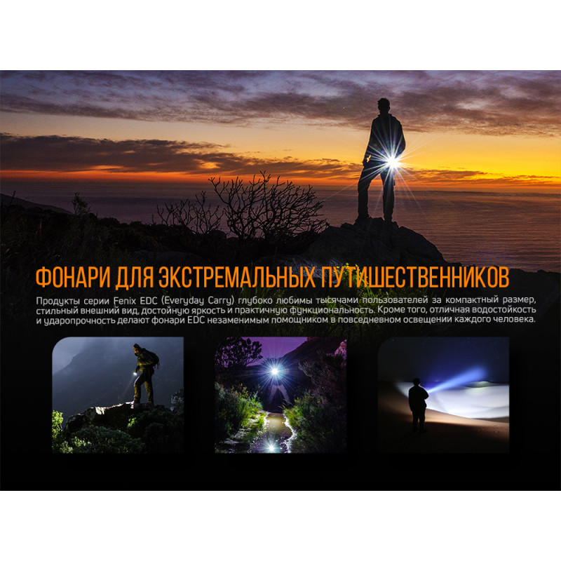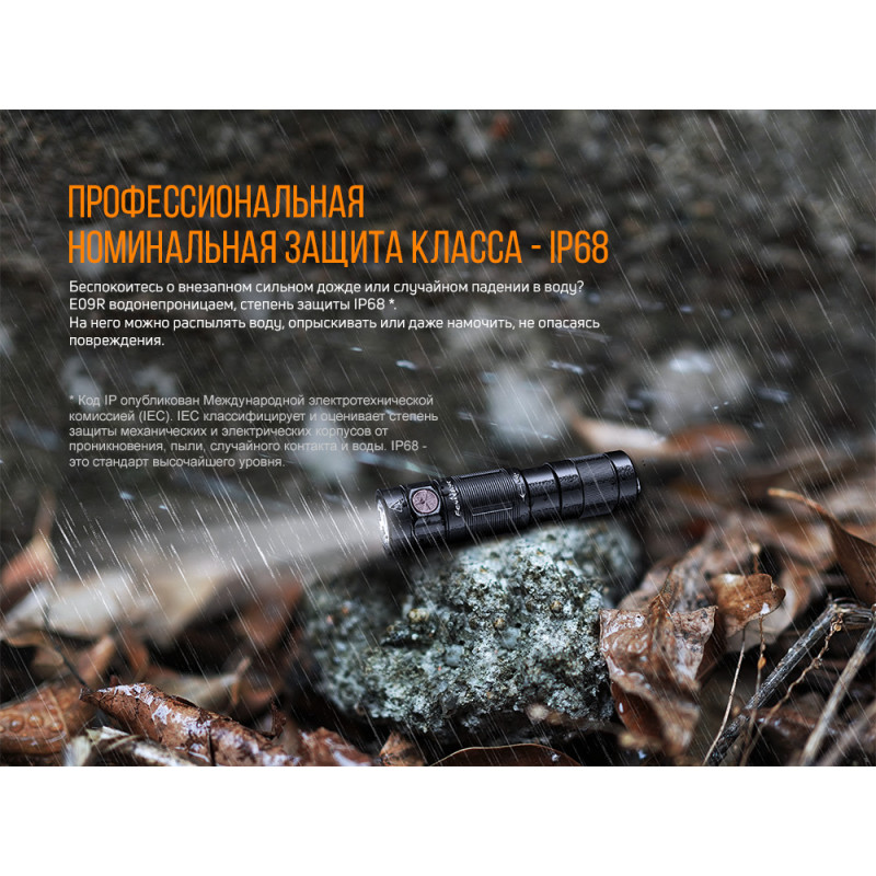 | Комплектація | Ліхтар Fenix E09R, кабель для зарядки USB Type-C, кільцона Ключі, запасне кільце ущільнювача, інструкція, гарантійний талон. | ||||||